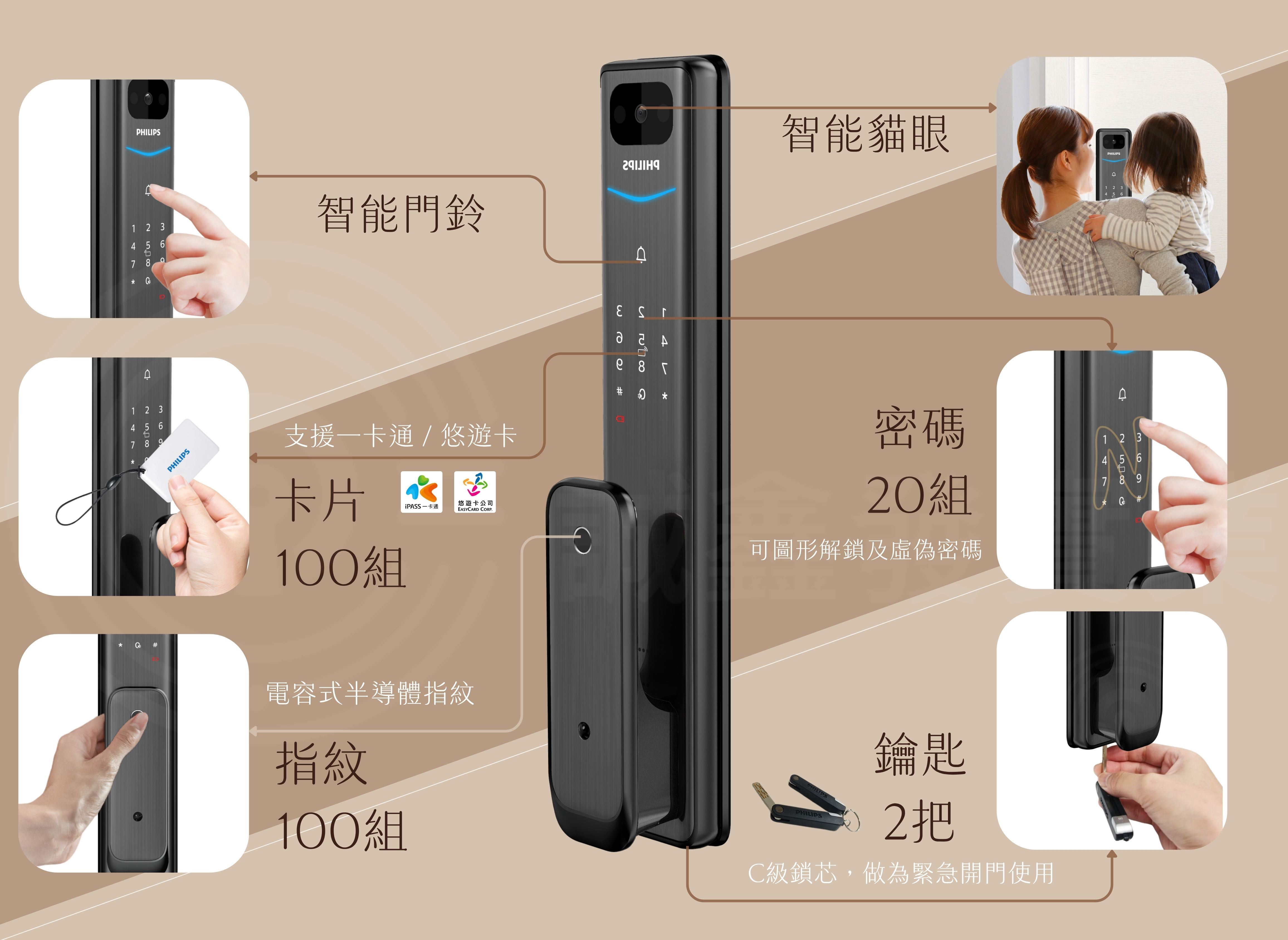指紋/卡片/密碼/鑰匙/WIFI/貓眼/門鈴