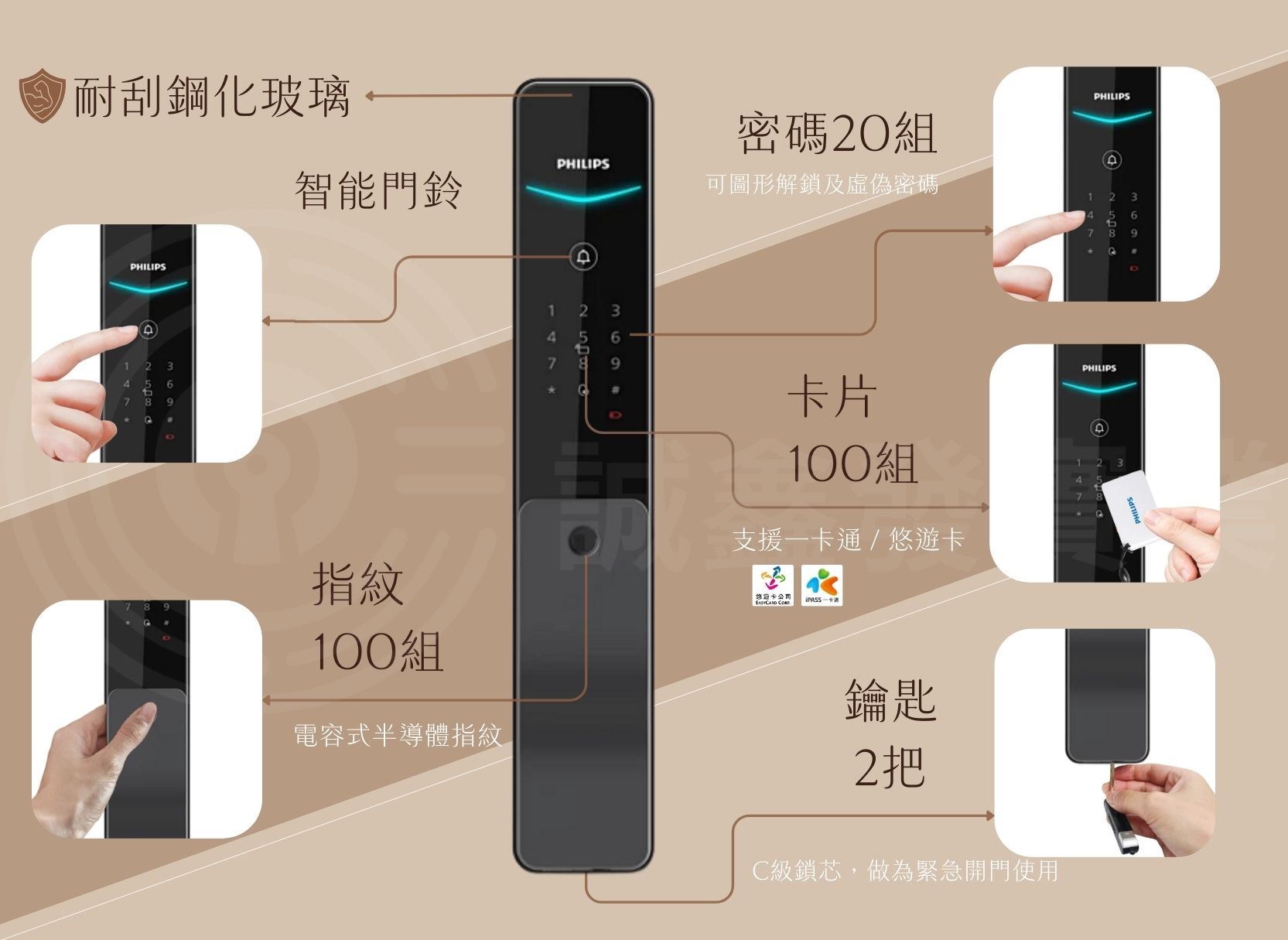 指紋/卡片/密碼/鑰匙/WIFI